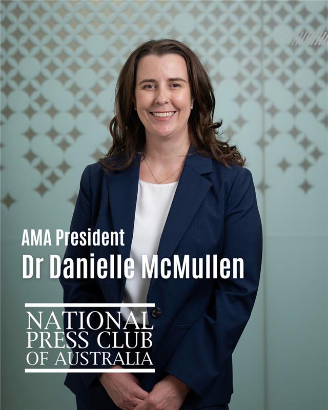 Federal AMA President Dr Danielle McMullen will address the National Press Club of Australia on “Underpinning Australia’s healthcare system: strengthening the base, not the facade”.