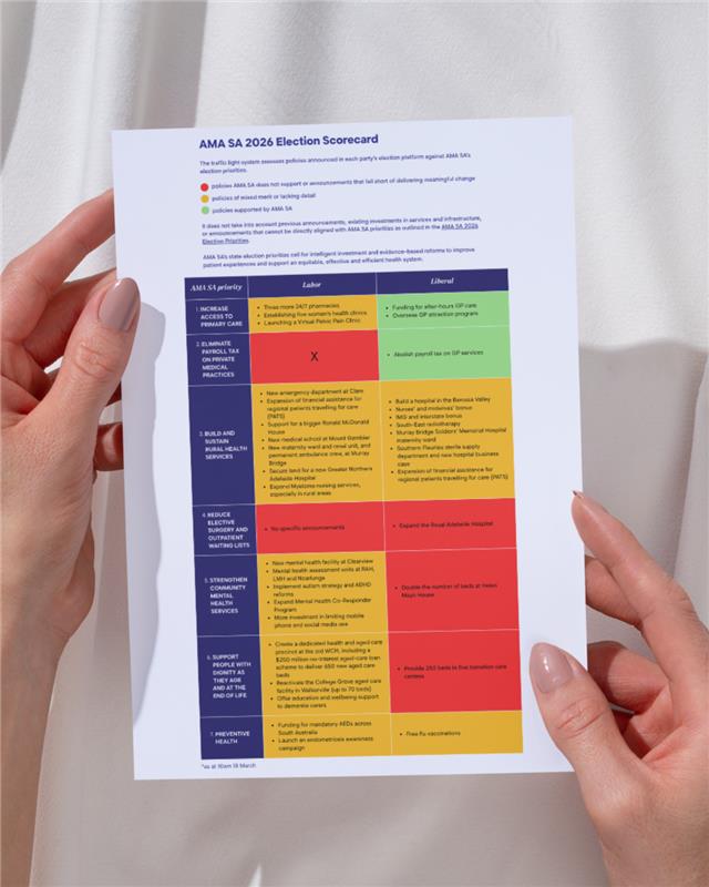 The Australian Medical Association in South Australia (AMA SA) has released its election scorecard on the major parties’ health promises, giving voters an overview of the major parties’ health commitments during the campaign.
